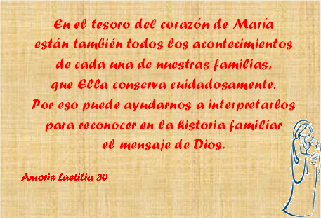 Lindo el párrafo de Amoris Laetitia. Qué consolador estar en el corazón de María como Familia. Y a nosotras nos toca como Familia Carismática.